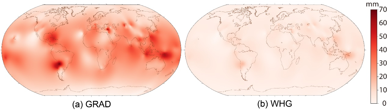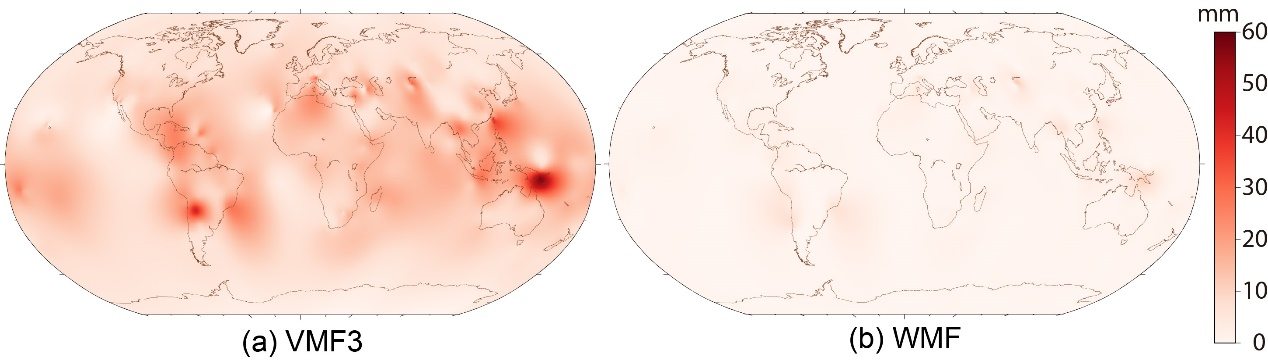 基于数值天气模型(NWM)构建对流层参数模型产品、实现高精度对流层延迟改正和水汽反演对精密空间大地测量数据处理与应用具有重要意义。近年,协同精密定位课题组采用ERA5再分析资料和射线追踪技术(Zhou等2020),构建了武汉大学系列对流层参数模型产品,精度和时空分辨率较国际同类具有优势。